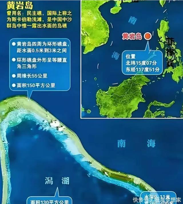同时中方还强调,菲律宾的领土范围早就有了明确的规定,任何条约里都没有说黄岩岛位列其中,因此对于菲方的抗议,中方表示不接受。 黄岩岛(民主礁)位于北纬15度07分,东经117度51分,距离海南岛500海里、西沙群岛340海里、中沙大环礁160海里。